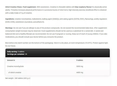 GOLD Line Kreatin-Kautabletten mit Blaubeergeschmack (mit Süßungsmitteln).