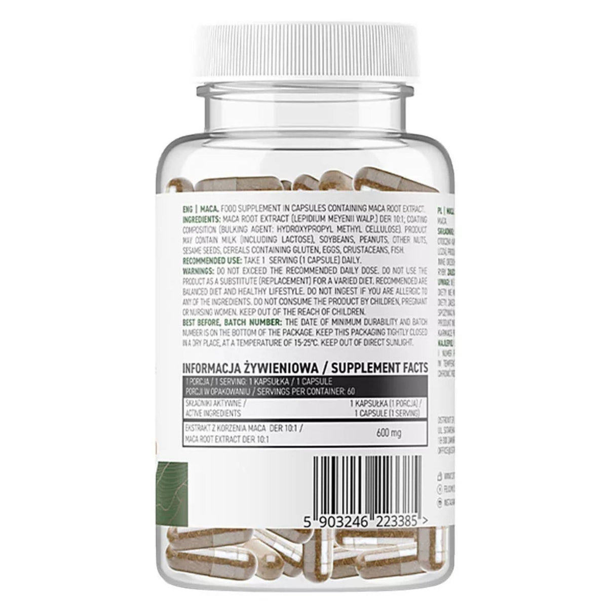 - Quelle des Maca-Wurzelextrakts DER 10:1 - eine Portion des Nahrungsergänzungsmittels liefert dem Körper 600 mg des Extrakts.