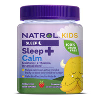 These Kids Sleep + Calm strawberry-flavored gummies are formulated with ingredients such as Melatonin, L-Theaine and a blend of chamomile, lavender, lemon balm.